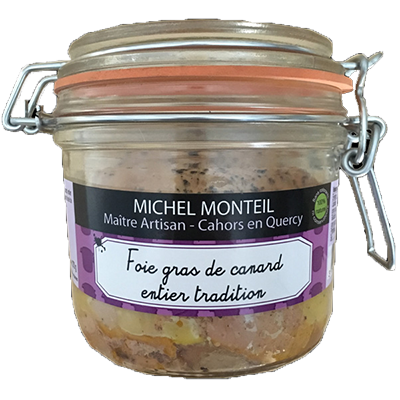 Les foies gras stérilisés en pot. Met artisanal du Sud-Ouest produits à Cahors en Quercy.