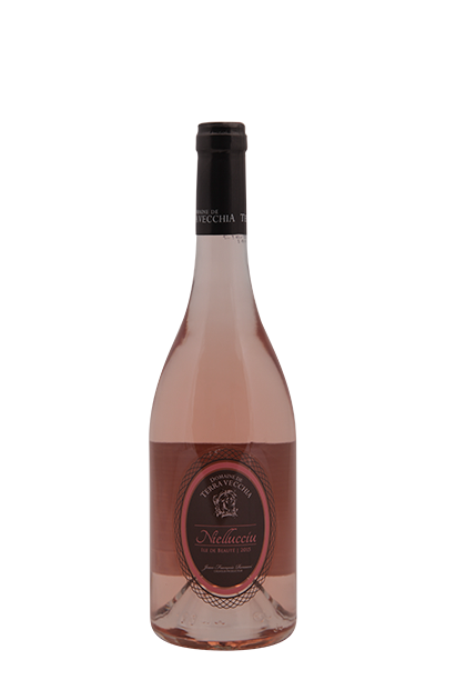 Né entre mer, montagne et maquis, ce rosé frais et gourmand offre des notes de fruits et d'essences du maquis.